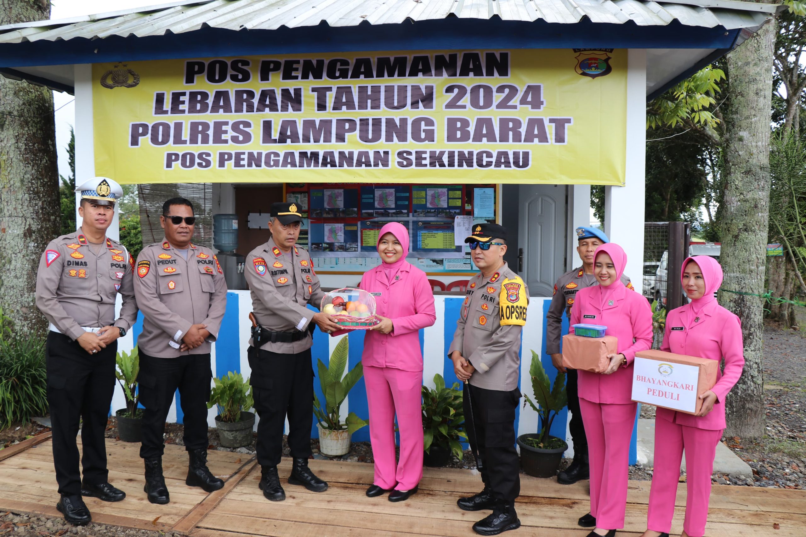 Lambar, Harian Koridor-Kapolres Lampung Barat Akbp Ryky Widya Muharam, S.H.,S.Ik bersama dengan Ketua Bhayangkari Cabang Lampung Barat Ny. Meiti Ryky mengunjungi dan mengecek pospam vinus Sumber Jaya dan Pospam Sekincau. Sabtu (06/04/2024)