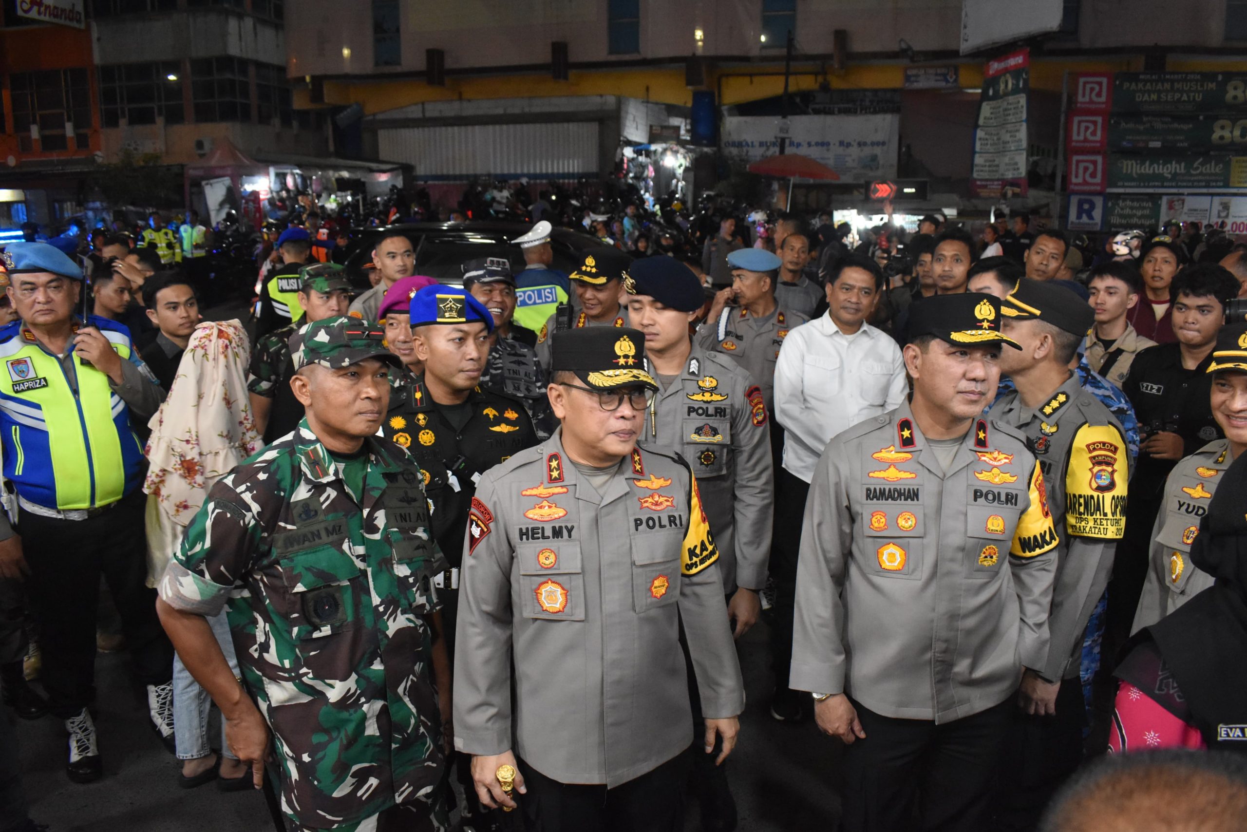 Bandarlampung,Harian Koridor-Komandan Korem 043/Gatam Brigjen TNI Iwan Ma’ruf Zainudin, S.E., bersama Kapolda Lampung Irjen Pol Helmy Santika, S.H., S.I.K., M.Si., dan Forkopimda Provinsi Lampung, Selasa malam (9/4/2024) memantau sekaligus mengecek tiga pos pengamanan yang berada di Kota Bandar Lampung, yakni Pos Pam Terminal Kemiling, Pos Pam Bambu Kuning dan Pos Pelayanan Ramayana.