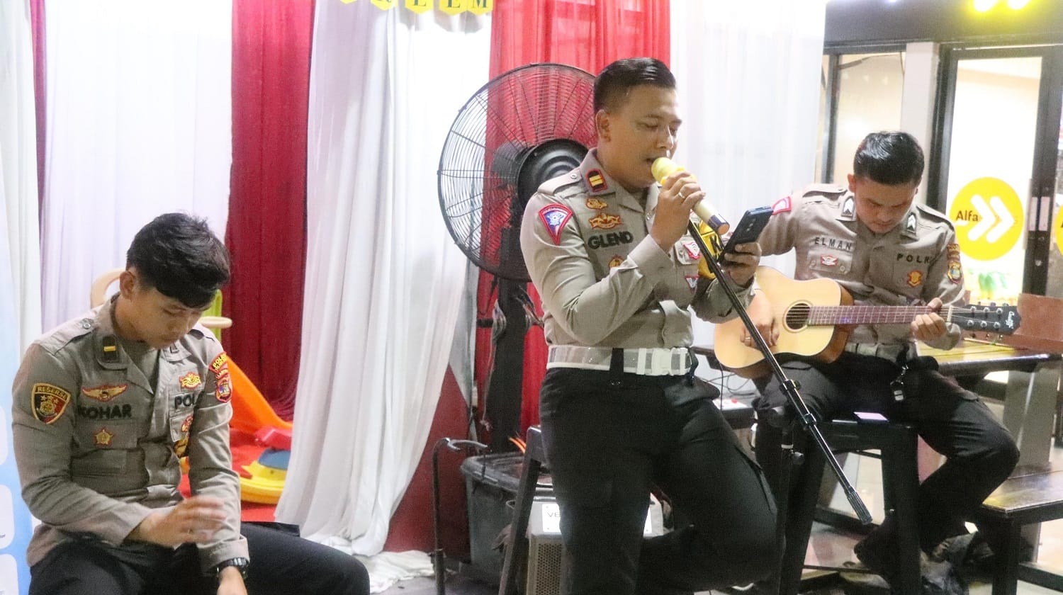Yang tampil pada live musik pada Senin (08/04/2023) malam adalah Kasat Lantas Iptu Glend Felix, S.Tr.K, SIK, CPHR, CBA, sebagai vokalis, Kanit Resum Satreskrim, Ipda M Kohar Azhari, S.Tr.K, yang memainkan drum cajon, dan Bamin Sat Lantas, Briptu Elman Daud H, sebagai pemetik gitarnya.