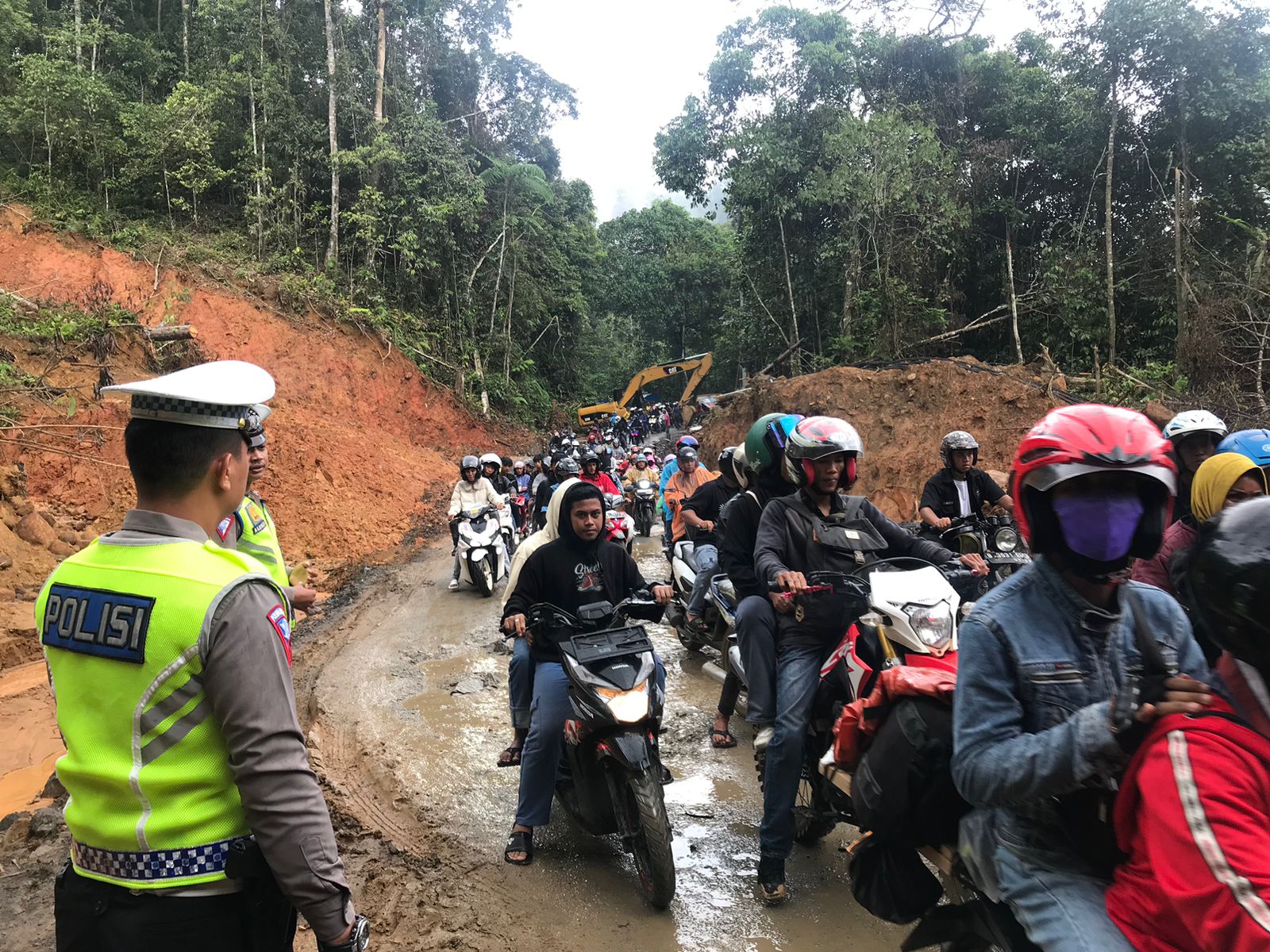 Kasat Lantas Iptu David Pulner, S.H.M.M. mewakili Kapolres Lampung Barat Akbp Ryky Widya Muharam, S.H.,S.Ik mengatakan bahwa penumpukan kendaraan di lokasi longsor diakibatkan belum maksimalnya jalan sehingga masih diberlakukannya sistem buka tutup jalan.