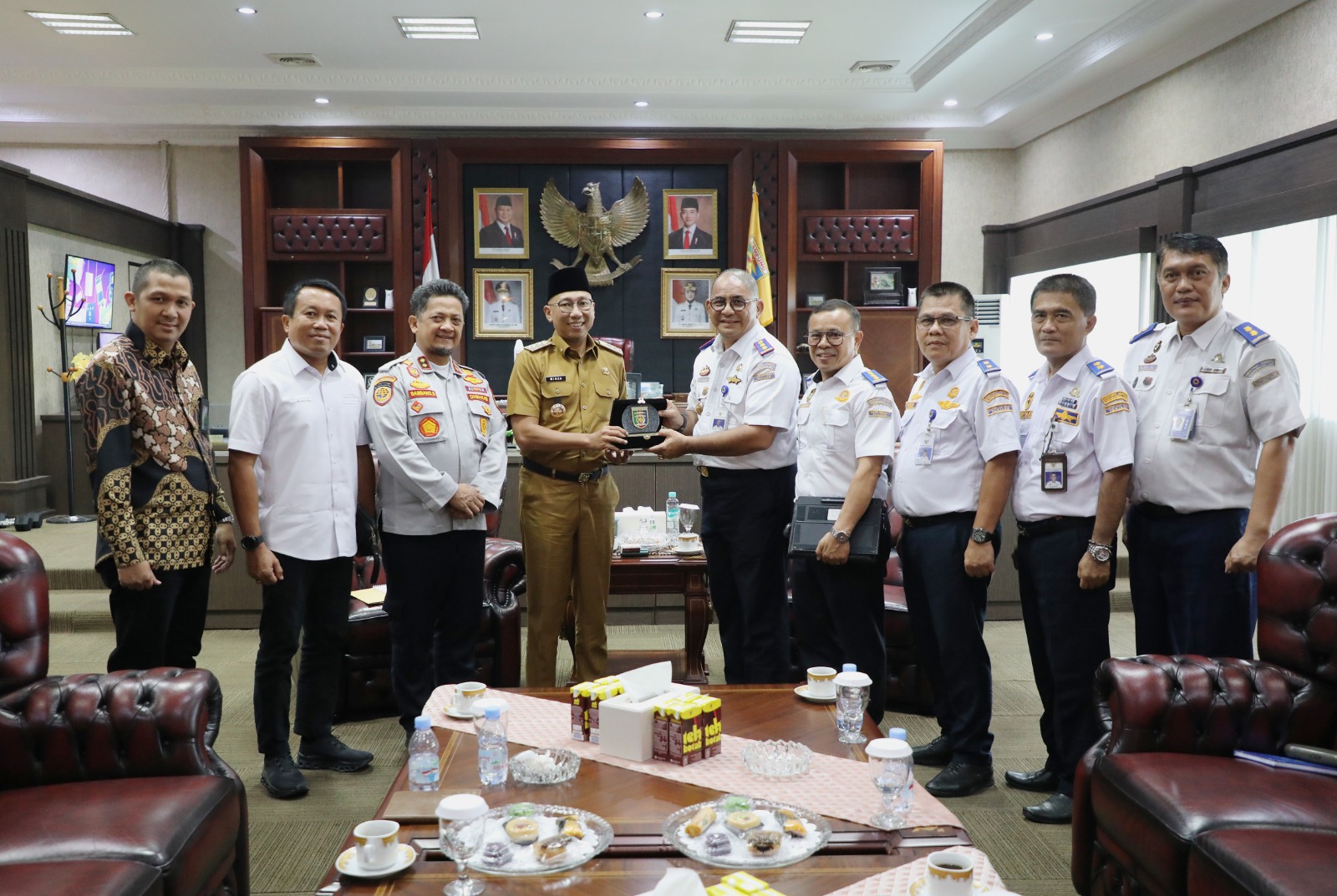 Lampung-Gubernur Lampung Rahmat Mirzani Djausal menyambut hangat kunjungan silaturahmi Kepala Kantor Kesyahbandaran dan Otoritas Pelabuhan (KSOP) Kelas I Panjang Hot Marojahan Hutapea, di Ruang Kerja Gubernur Lampung, Kantor Gubernur, Selasa (24/6/2025).