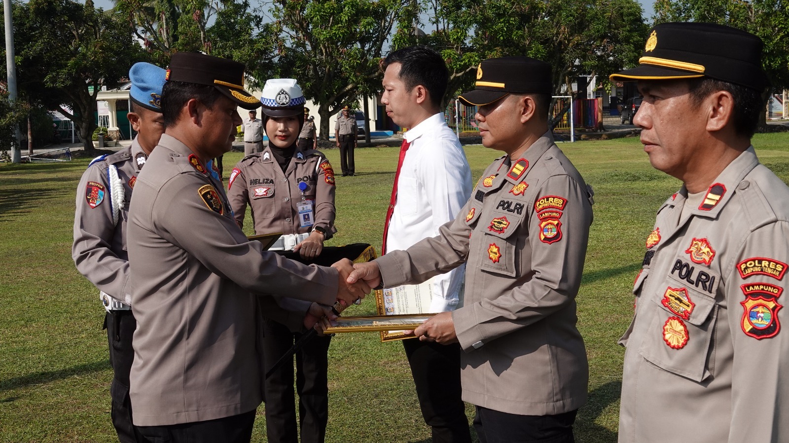 Kemudian, pada upacara tersebut, Kapolres juga memberikan penghargaan kepada 3 personelnya yakni Kasat Reskrim Polres Lampung Tengah AKP Nikolas Bagas Yudhi Kurnia, S.I.K., M.H., M.Si, Kapolsek Seputih Raman Iptu Admar, S.Pd dan Kapolsek Seputih Banyak Iptu Chandra Dinata, S.H., M.H atas prestasi, dedikasi dan loyalitas dalam bidang operasional yang melebihi kewajiban dalam tugas.