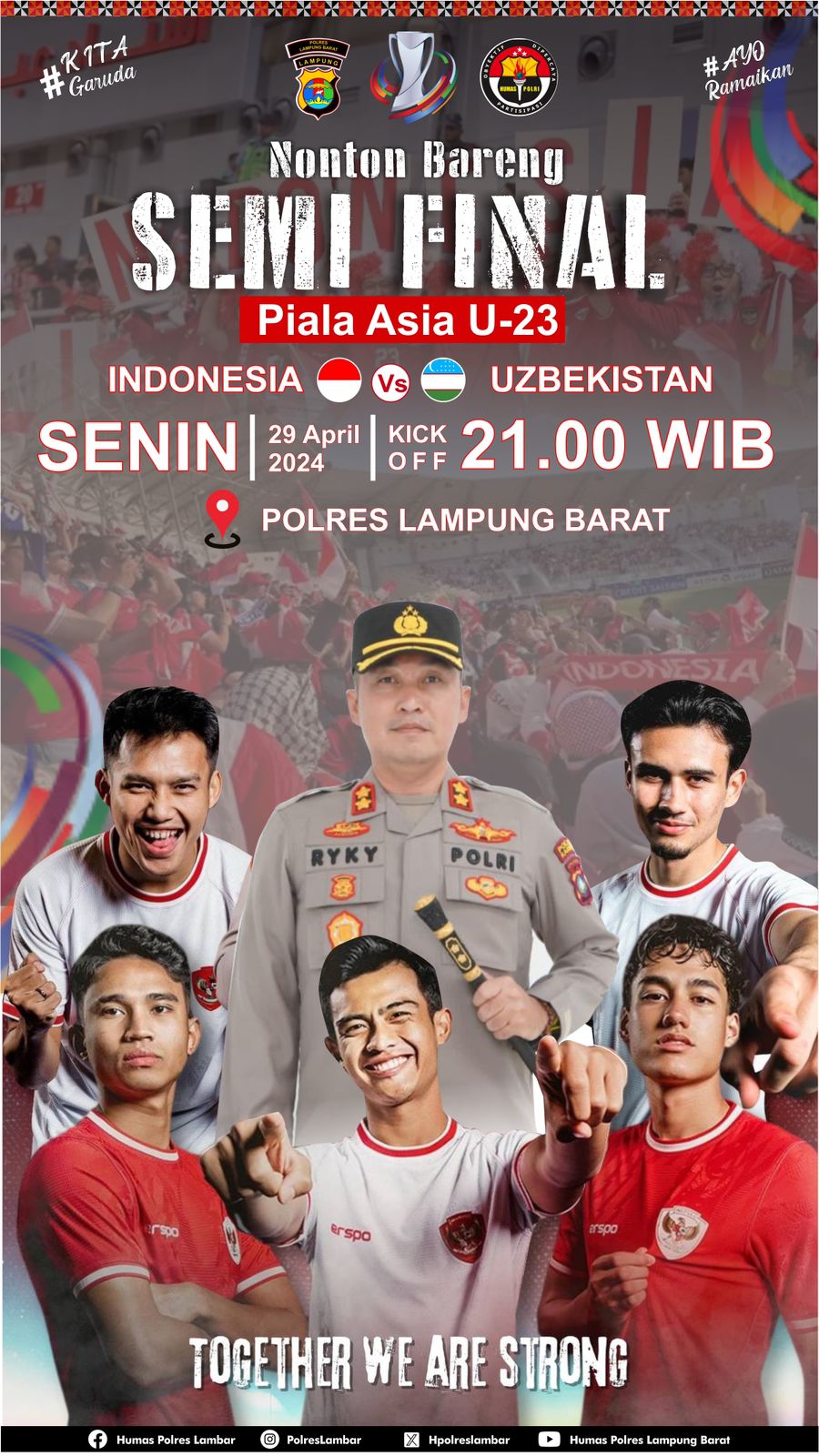 Lambar, Harian Koridor-Kepolisian Resor Lampung Barat mengadakan kegiatan nonton bareng (nobar) pertandingan Tim Nasional (Timnas) Indonesia melawan Timnas Uzbekistan pada babak semifinal Piala Asia U-23, Senin, sekitar pukul 21.00 WIB…