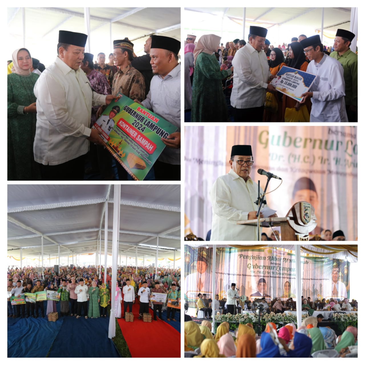 Pesawaran, Harian Koridor-Gubernur Lampung Arinal Djunaidi dan Ketua TP-PKK Provinsi Lampung Ibu Riana Sari Arinal menghadiri Pengajian Akbar Pemerintah Provinsi Lampung yang diselenggarakan di Lapangan Tri Kora, Kecamatan Kedondong, Kabupaten Pesawaran, Senin (27/5/2024).