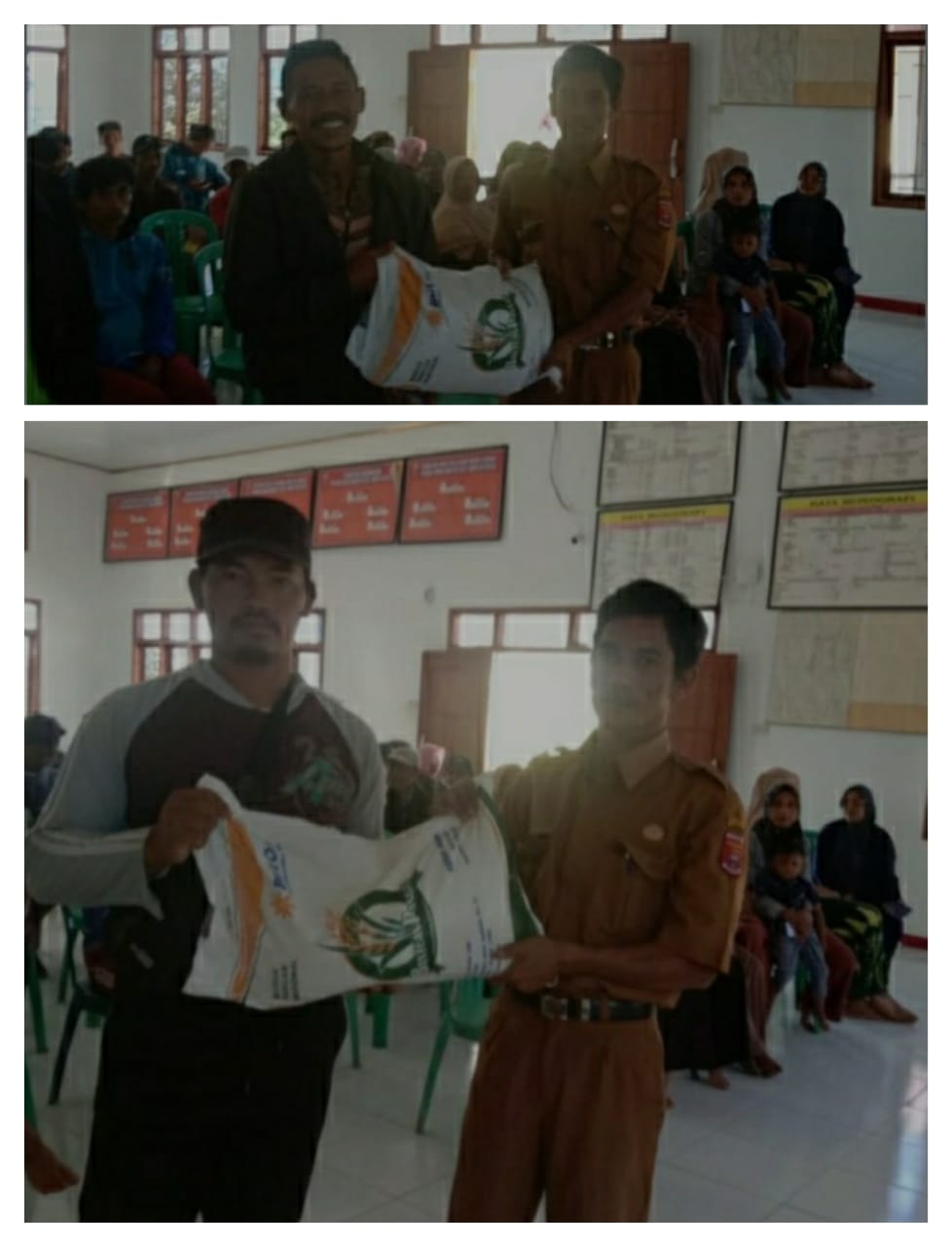 Pembagian beras CPP dibagikan langsung kepada 296 keluarga penerima manfaat (KPM) dan menerima bantuan 10 kg beras.