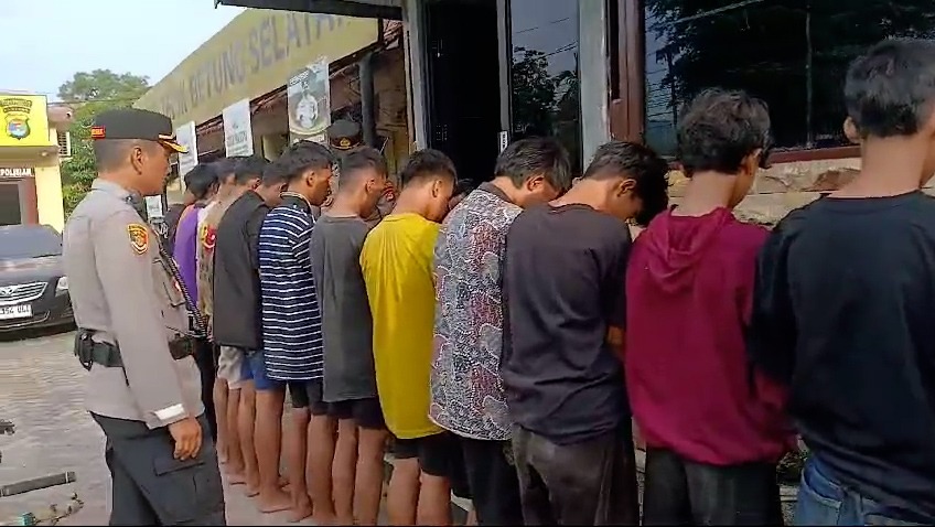 Bandar Lampung,Harian Koridor-Polsek Teluk Betung Selatan mengamankan 16 orang remaja yang diduga ikut terlibat dalam aksi tawuran yang terjadi di jalan Yos Sudarso, Kelurahan Sukaraja, Kecamatan Bumi Waras, Kota Bandar Lampung.