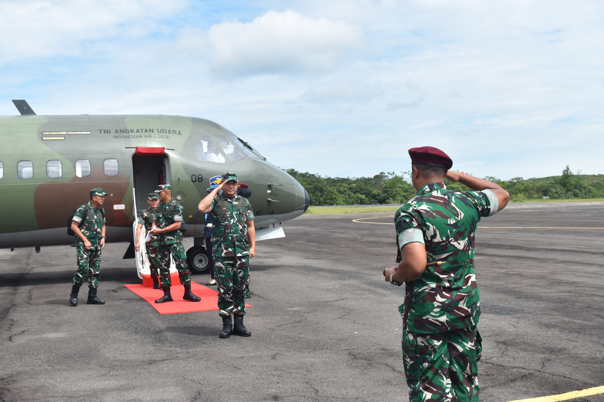 Kedatangan Kepala Staf Angkatan Darat Jenderal TNI Maruli Simanjuntak, M.Sc, beserta rombongan ke Provinsi Lampung menggunakan pesawat milik TNI-AU, di bandara Gatot Subroto pukul 10.05 Wib.