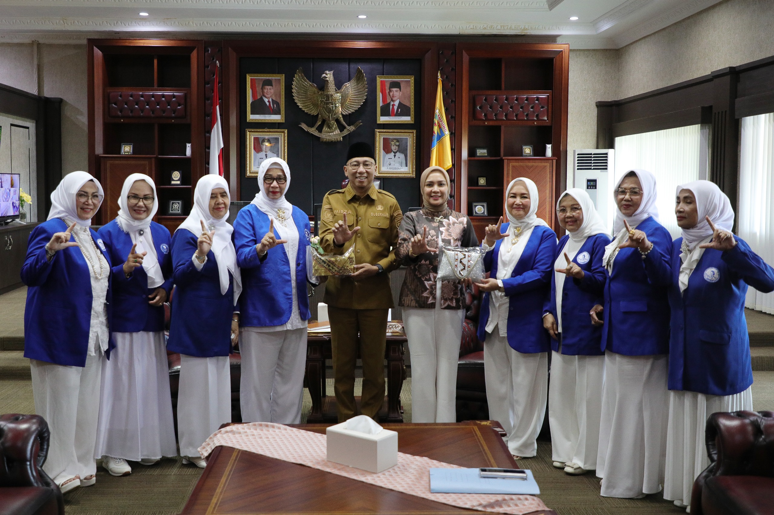 Bandarlampung-Gubernur Lampung Rahmat Mirzani Djausal didampingi Ketua TP PKK Provinsi Lampung Ibu Purnama Wulan Sari Mirza, menerima kunjungan Ikatan Wanita Pengusaha Indonesia (Iwapi) di Ruang Kerja Gubernur, Bandarlampung, Selasa (25/03/2025).