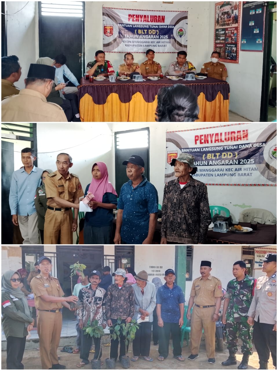 Lampung Barat, Pemerintah Pekon Manggarai, Kecamatan Air Hitam, Kabupaten Lampung Barat, menggelar pembagian Bantuan Langsung Tunai Dana Desa (BLT DD) tahap pertama sekaligus pembagian 580 bibit Alpukat Program iremax untuk perubahan iklim di Balai Pekon setempat. Selasa (10/6/2025).