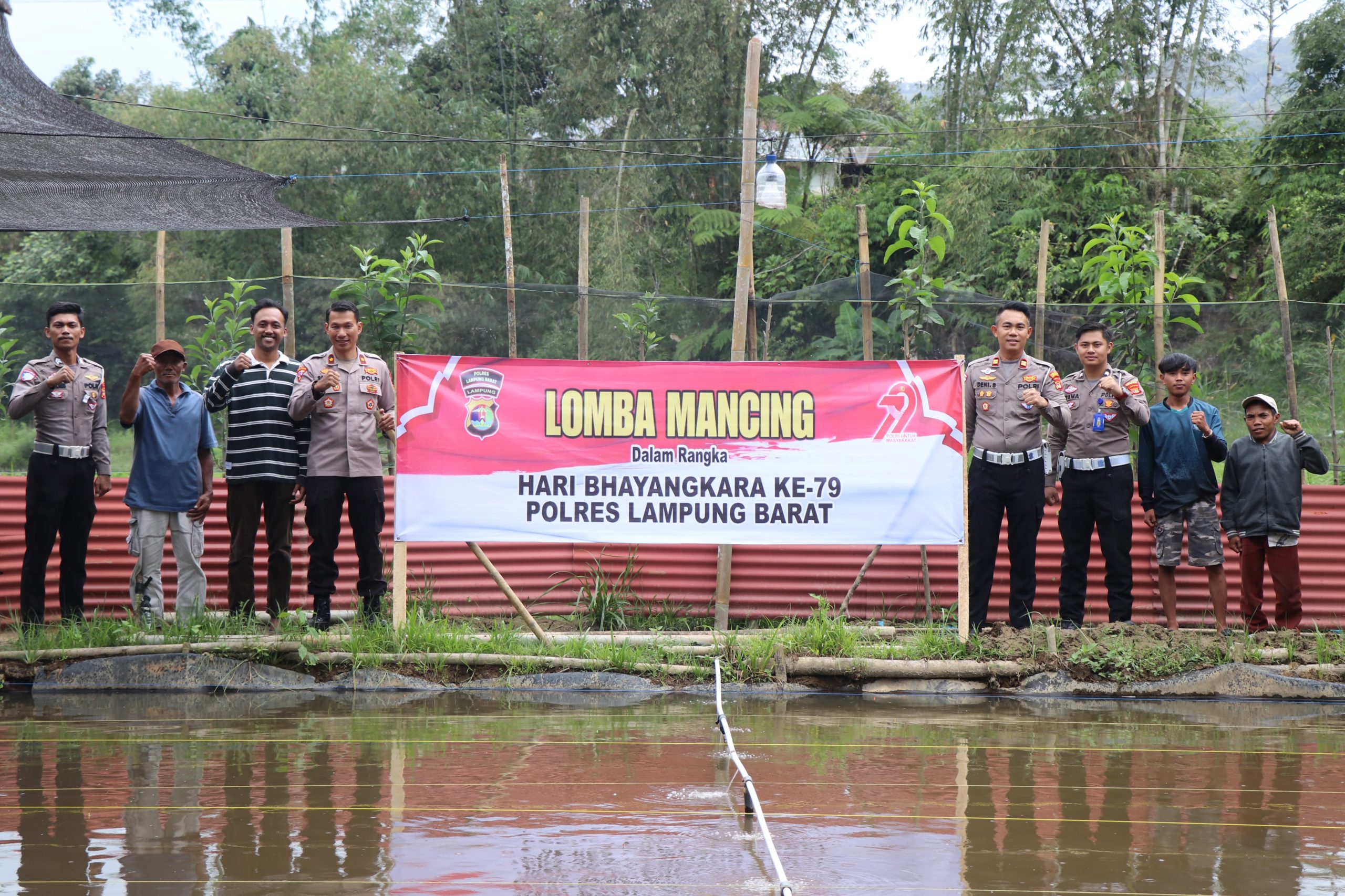 Lampung Barat, Dalam rangka menyambut Hari Bhayangkara ke-79, Polres Lampung Barat menggelar kegiatan lomba mancing yang berlangsung meriah di kolam pemancingan War Fishing, Kelurahan Way Mengaku, Kecamatan Balik Bukit, Lampung Barat.