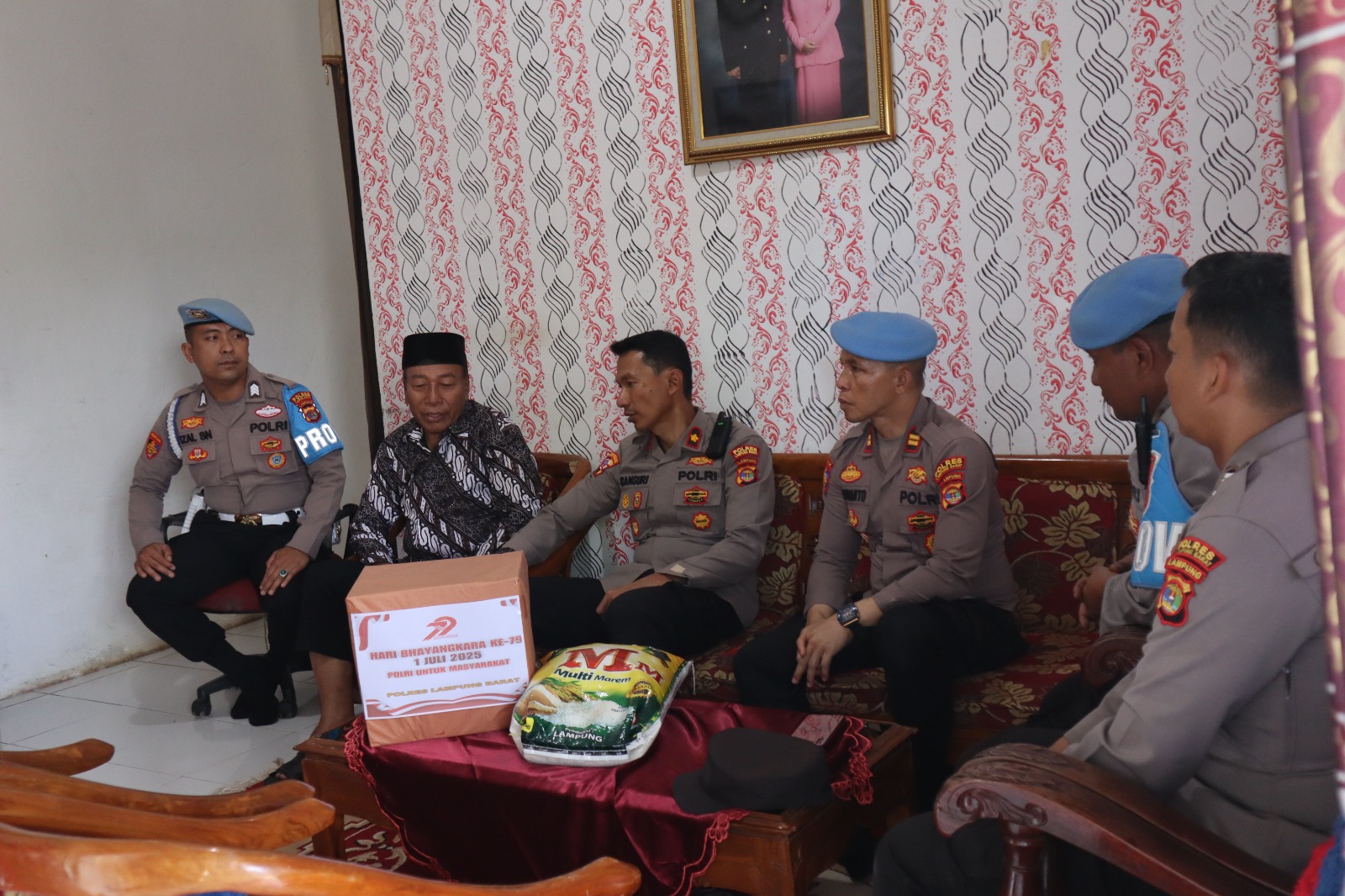Lampung Barat – Dalam rangka memperingati Hari Bhayangkara ke-79, Polres Lampung Barat menggelar kegiatan anjangsana ke rumah purnawirawan Polri sebagai bentuk penghargaan atas jasa dan pengabdian mereka. Salah satu yang dikunjungi adalah Aipda (Purn) Rusaedi yang berada di Pekon Sebarus Lampung Barat.