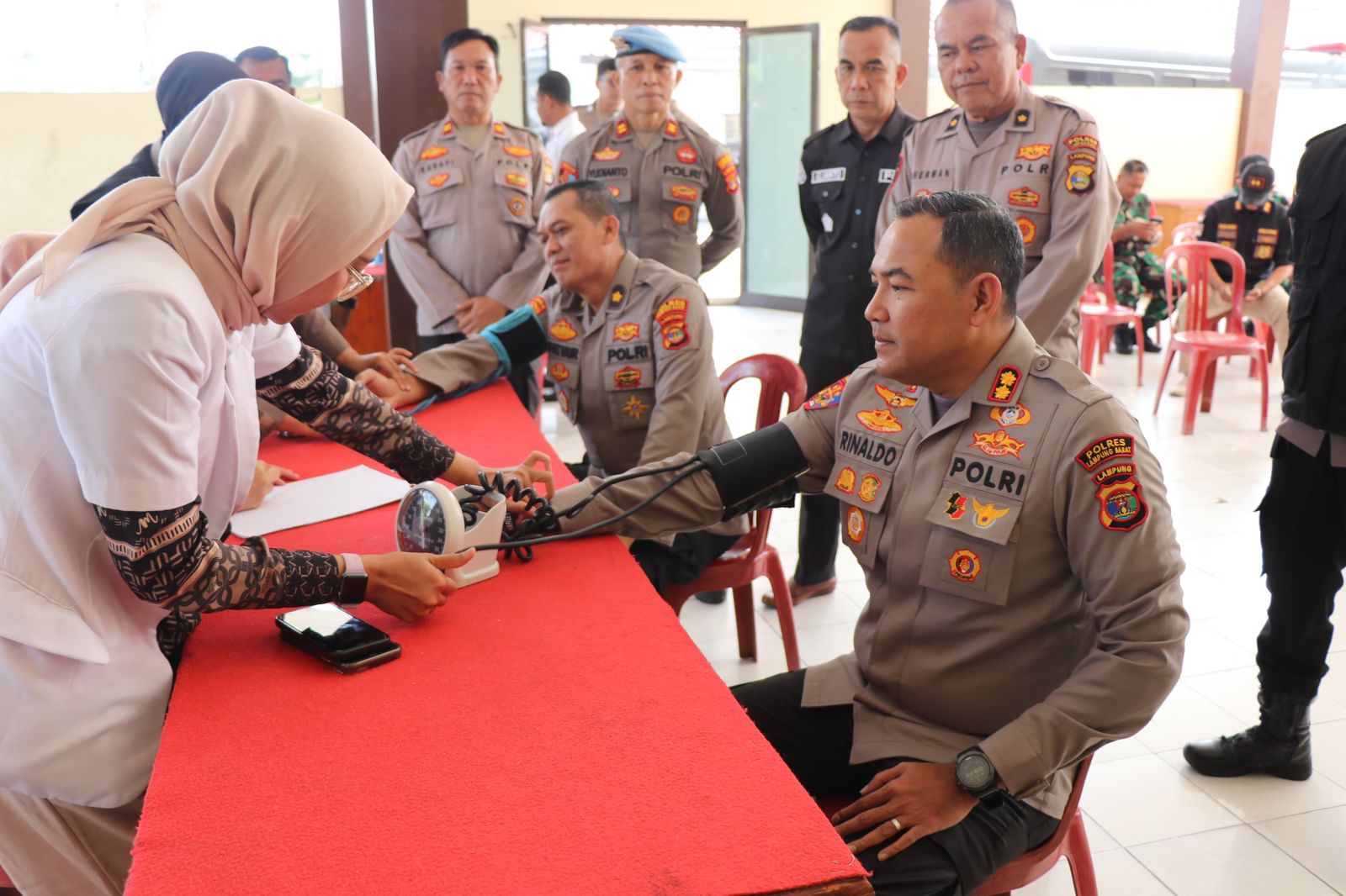 Lampung Barat- Dalam rangka menyambut Hari Bhayangkara ke-79, Polres Lampung Barat melaksanakan kegiatan bakti kesehatan berupa Donor Darah yang diikuti oleh personel Polres Lampung Barat dan Polsek Jajaran, Bhayangkari Cabang Lampung Barat, Kodim 0422/LB, Kejaksaan Negeri Lampung Barat, Dishub dan BRI Kantor Cabang Liwa.