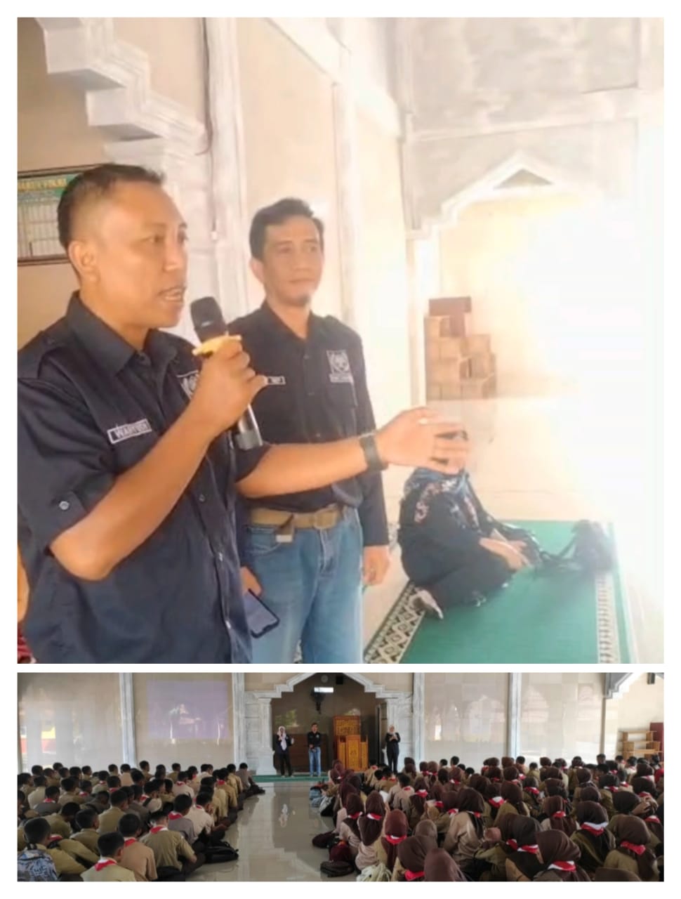 Ketua PWI Lamteng Gunawan Syah diwakili Sekertaris Jendral (Sekjen) PWI Lamteng Roy Marika Parleoly dari MNC Media Group dan Suci Hartati,S.H dari SKH Radarlamteng Group yang hadir didampingi Tika Sudarlis, Regina Balqis Adlay dan Wahyudi menyampaikan materi seputar Bijak Bermedia Sosial kepada siswa dan siswi SMKN 1 Seputih Agung pada Jumat (18/7/2025) di Masjid sekolah.
