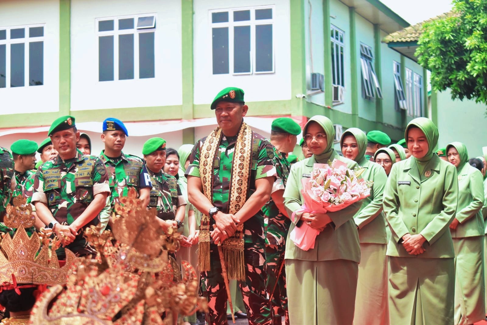 Lampung – Setibanya Pangdam XXI/Raden Inten (RI) Mayjen TNI Kristomei Sianturi, S.Sos., M.Si. (Han) bersama Ketua Persit KCK Daerah XXI/RI Ny. Asti Kristomei Sianturi di Makodam XXI/RI, disambut hangat Danrem 041/Gamas beserta Ibu dan Danrem 043/Gatam beserta Ibu. Penyambutan ditandai dengan pengalungan kain tapis serta pemberian bunga tangan oleh Ibu Danrem 043/Gatam kepada Ibu Pangdam XXI/RI, Sabtu (30/08/2025).