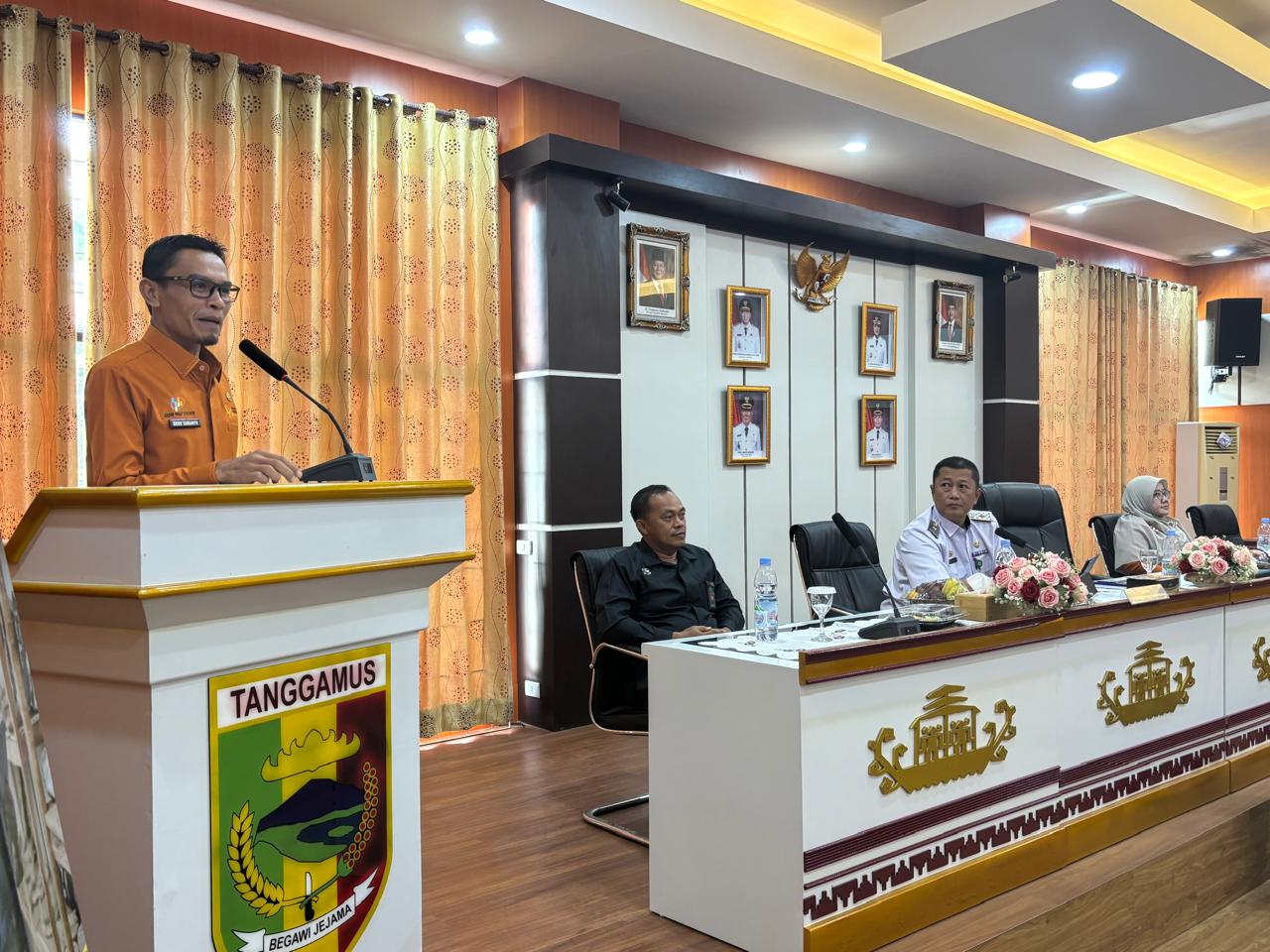 Kegiatan berlangsung secara hybrid dan dihadiri langsung jajaran Pemerintah Daerah, kepala OPD, camat, perwakilan kepala pekon, serta tamu undangan lainnya, sementara seluruh kepala pekon se-Kabupaten Tanggamus mengikuti secara daring.