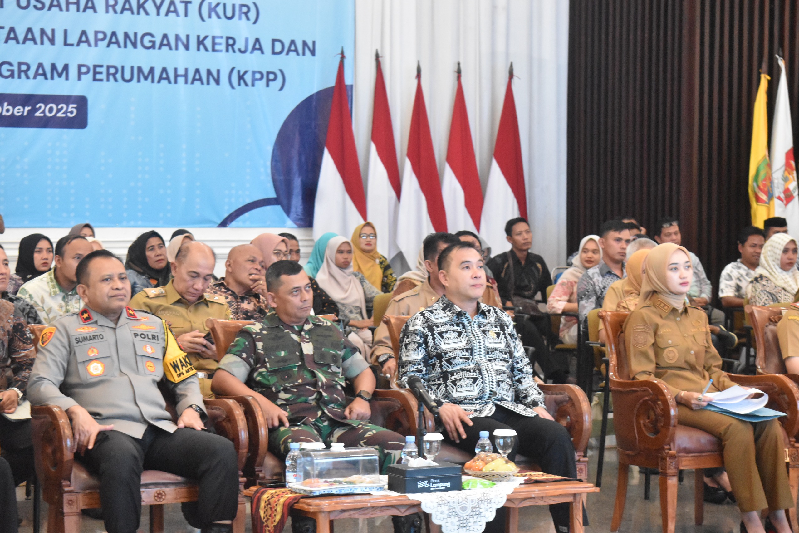 Lampung – Kepala Staf Kodam XXI/Radin Inten Brigjen TNI Andrian Susanto, S.I.P., M.Han., M.I.Pol., bersama Wakil Gubernur Lampung, Dr. Jihan Nurlela Chalim, M.M., serta jajaran Forkopimda Provinsi Lampung, menghadiri kegiatan Akad Massal Kredit Usaha Rakyat (KUR) bagi 800.000 debitur dan Peluncuran Kredit Program Perumahan (KPP), bertempat di Mahan Agung, Teluk Betung, Bandar Lampung, pada Selasa (21/10/2025).