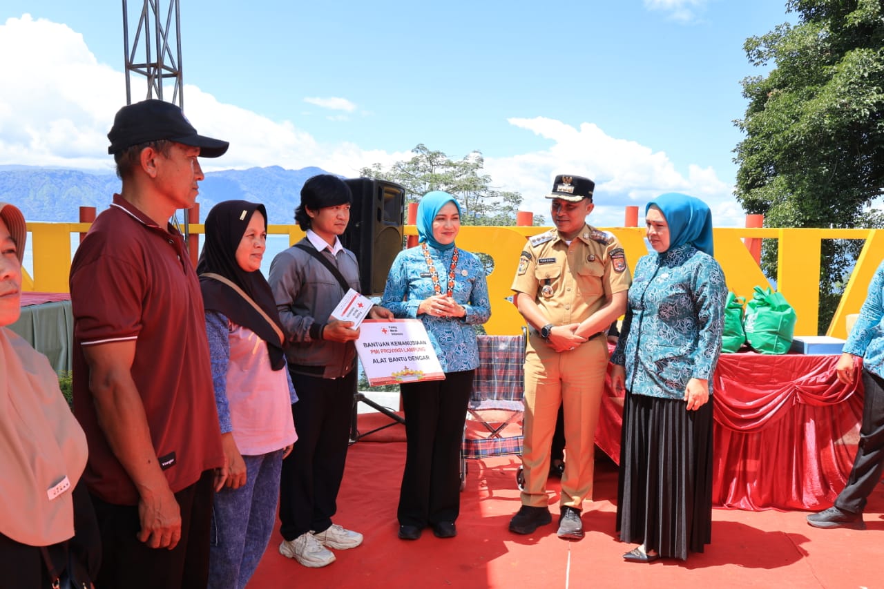 Dalam kegiatan tersebut, TP PKK Provinsi Lampung bersama OPD terkait menyerahkan berbagai bentuk bantuan kepada masyarakat, di antaranya: Modul Posyandu dari Dinas Kesehatan Provinsi Lampung berupa 50 paket sembako dan 1 kursi roda bagi lansia, 5 unit mesin las bagi satu kelompok UEP dari Dinas Sosial Provinsi, dan bantuan pembangunan jalan di Pekon Lumbok Selatan dari Dinas PKPCK Provinsi Lampung.