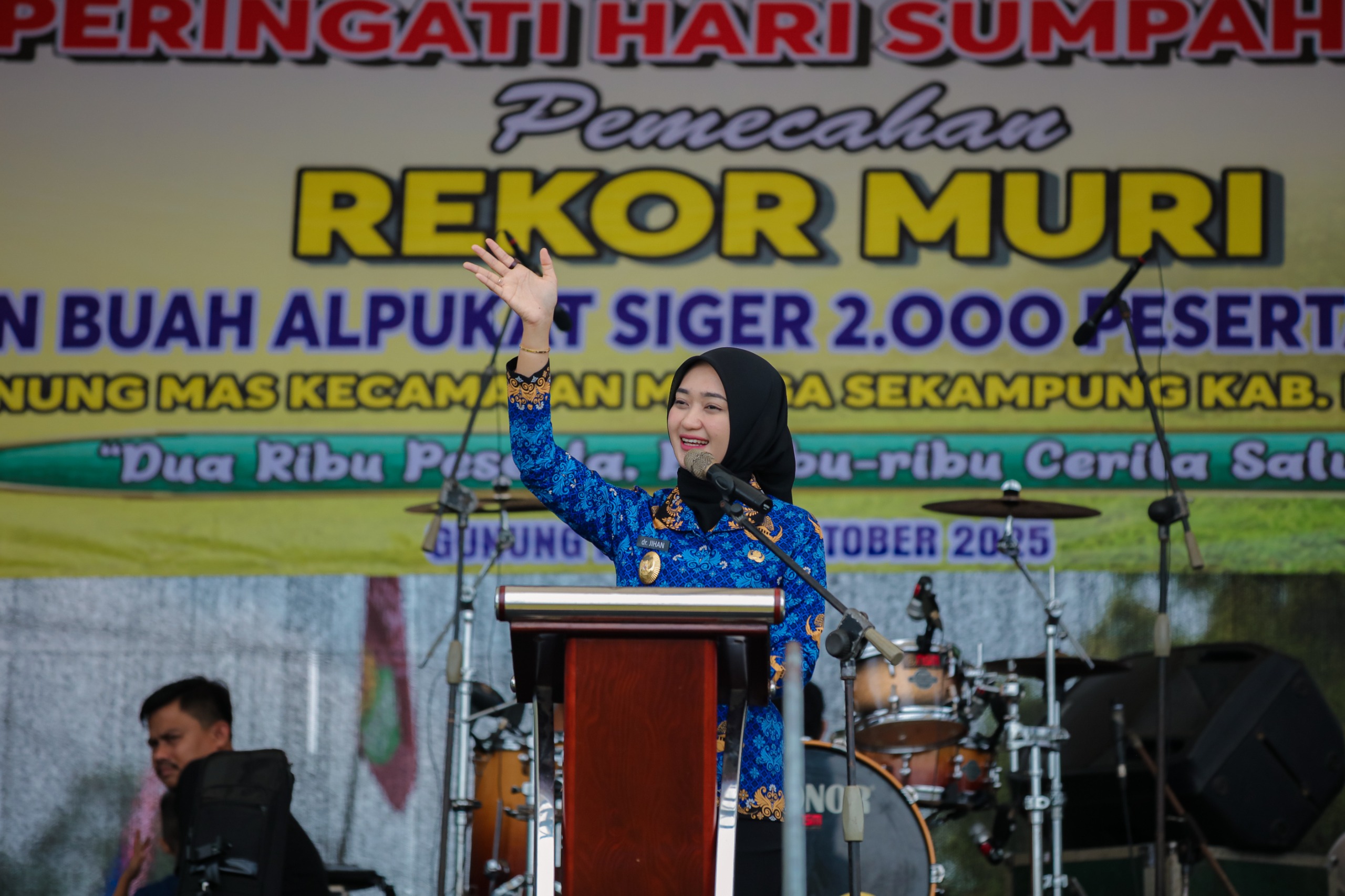 Lamtim-Wakil Gubernur Jihan Nurlela menghadiri kegiatan Pemecahan Rekor MURI Makan Alpukat Siger oleh 2.000 peserta yang digelar di Lapangan Merdeka Gunung Mas, Kabupaten Lampung Timur, Selasa (28/10/2025).