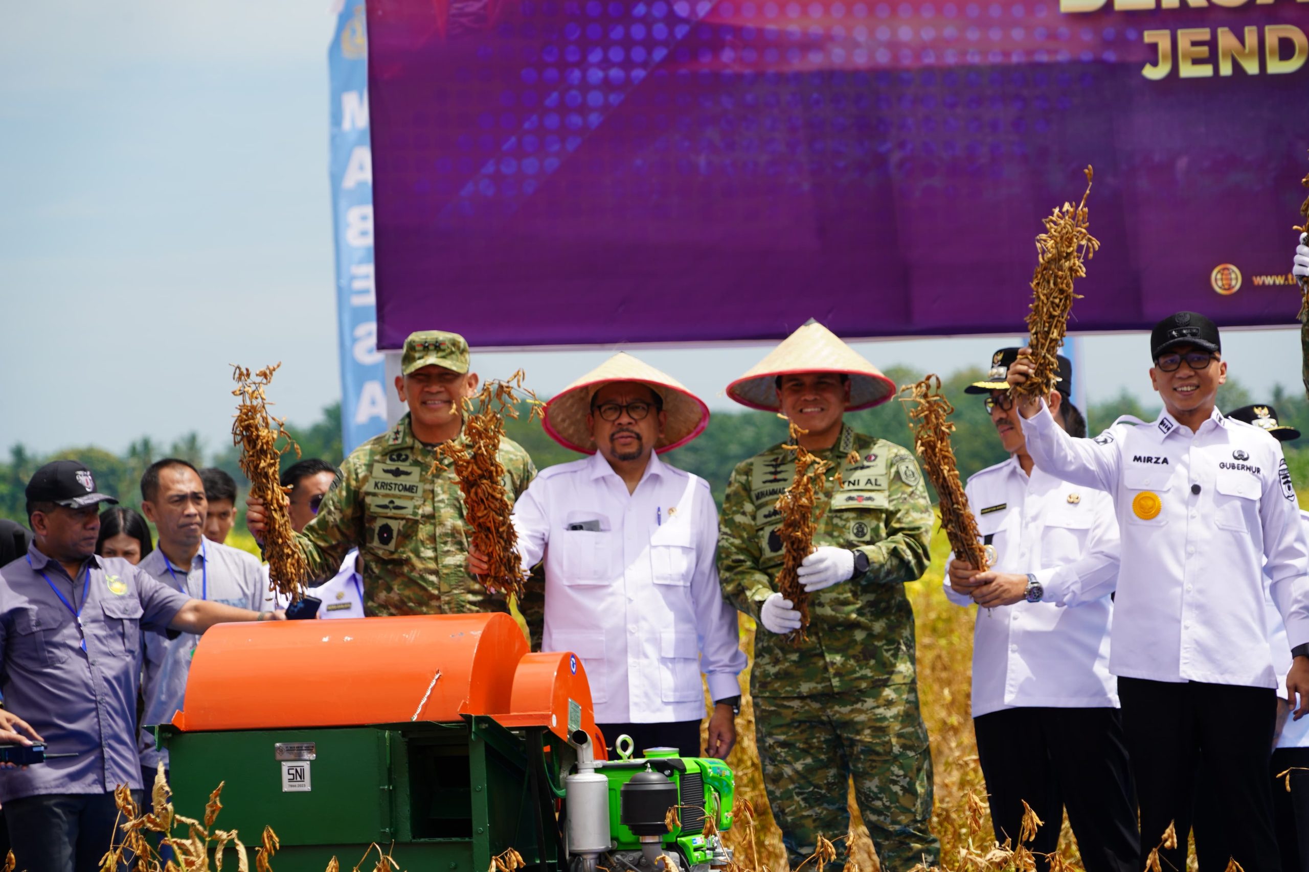 Lampung – Bertempat di Markas Kimal Lampung, Desa. Madukoro, Kecamatan Kotabumi Utara, Kabupaten Lampung Utara, Pangdam XXI/Radin Inten Mayjen TNI Kristomei Sianturi, S.Sos., M.Si.,(Han), mengahadiri panen raya kedelai bersama Menteri Pertahanan RI Jenderal TNI (Purn) Dr. Sjafrie Sjamsoeddin, M.B.A. Rabu (29/10/2025)
